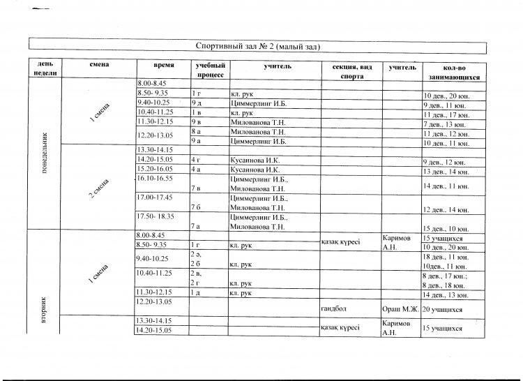 Занятость спортивного зала КГУ СОШ №12 » Средняя общеобразовательная школа № 12
