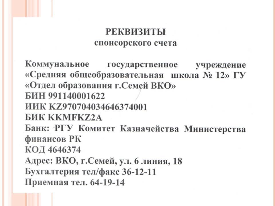 Реквизиты спонсорского счета » Средняя общеобразовательная школа № 12
