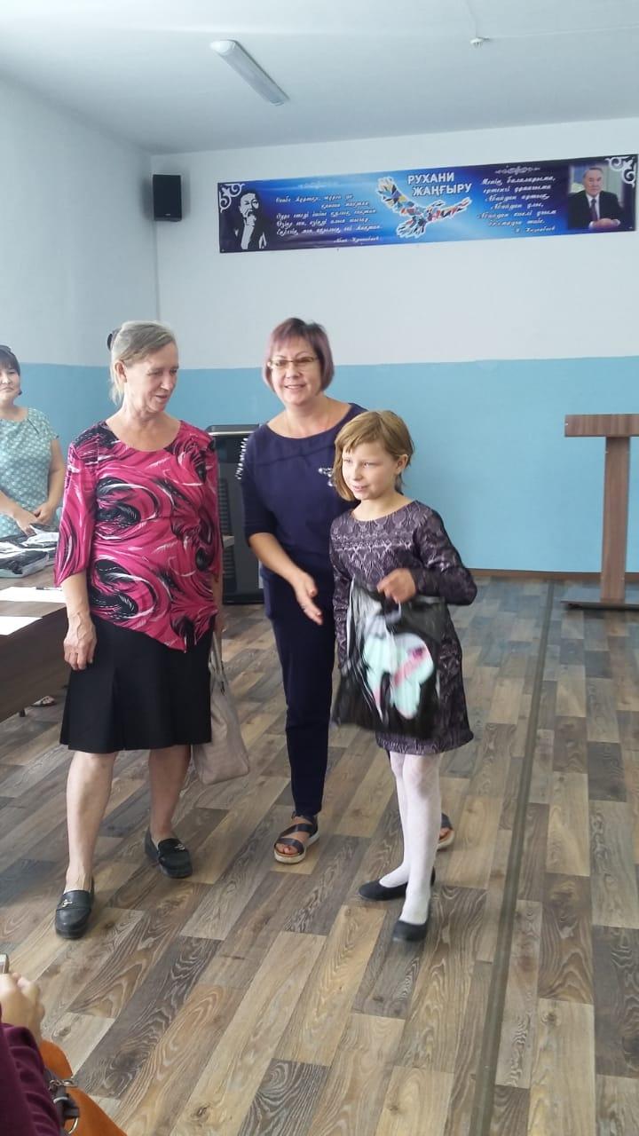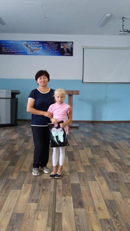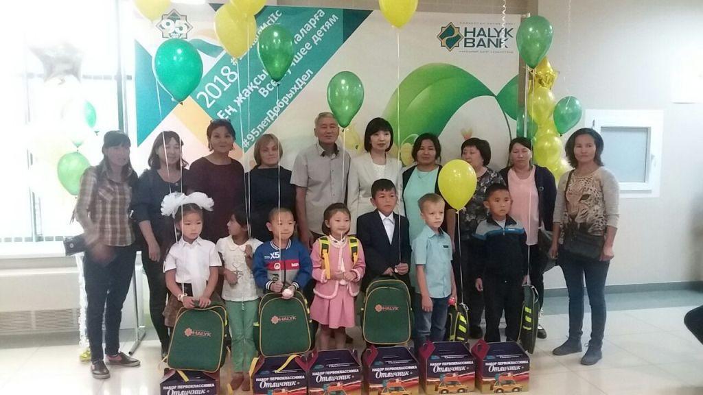 В филиале Народный банк в торжественной обстановке первоклассникам вручили портфели и канцелярские принадлежности: 1)Естай Рахымша 1 «А»;2)Замангалиев Шынгыс 1 «Ә»3) Альсеитова Камалия 1 «Б» класс;4)Жакиянова Маххабат 1 «В» класс; 5) Губанов Матвей 5 «А»класс;6) Макан Карлыгаш 1 «Д»