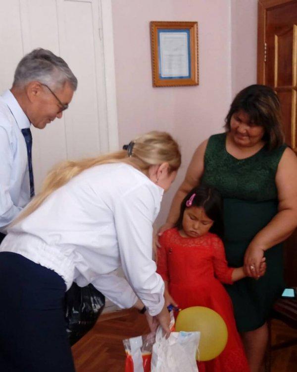 Капитан полиции, инспектор по делам   несовершеннолетних КГУ СОШ #12  Алшембекова Асель  Сембековна оказала  помощь для многодетной семьи в  рамка   республиканской акции "Дорога в школу".