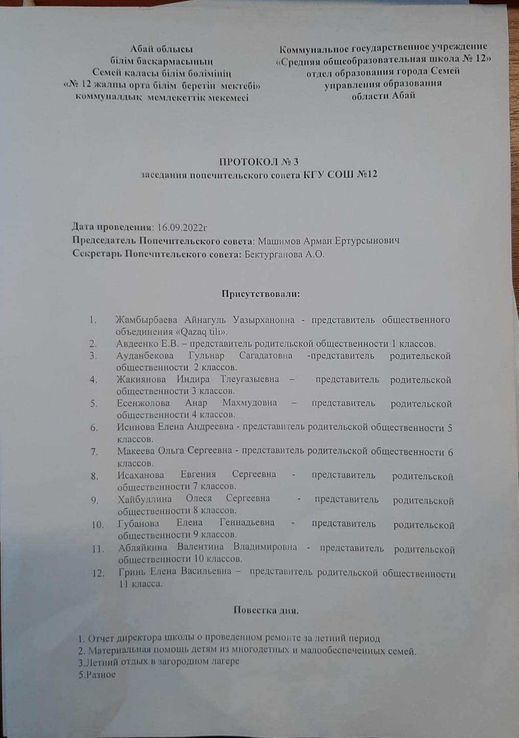 Протокол попечительского совета » Средняя общеобразовательная школа № 12