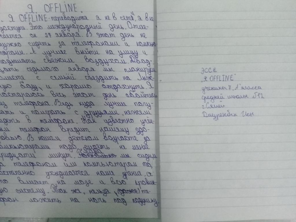23 қаңтар күні біздің мектебіміздің оқушыларымен халықаралық " Мен OFFLINE" интернетсіз бір күн атты сынып сағаттары , суреттер конкурсы өткізілді.