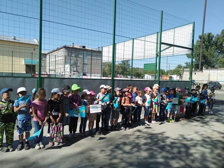 Сегодня пришкольном лагере "Ак Бота" отметили День государственных символов Республики Казахстан. Были проведены игры - викторины и конкурс рисунков.