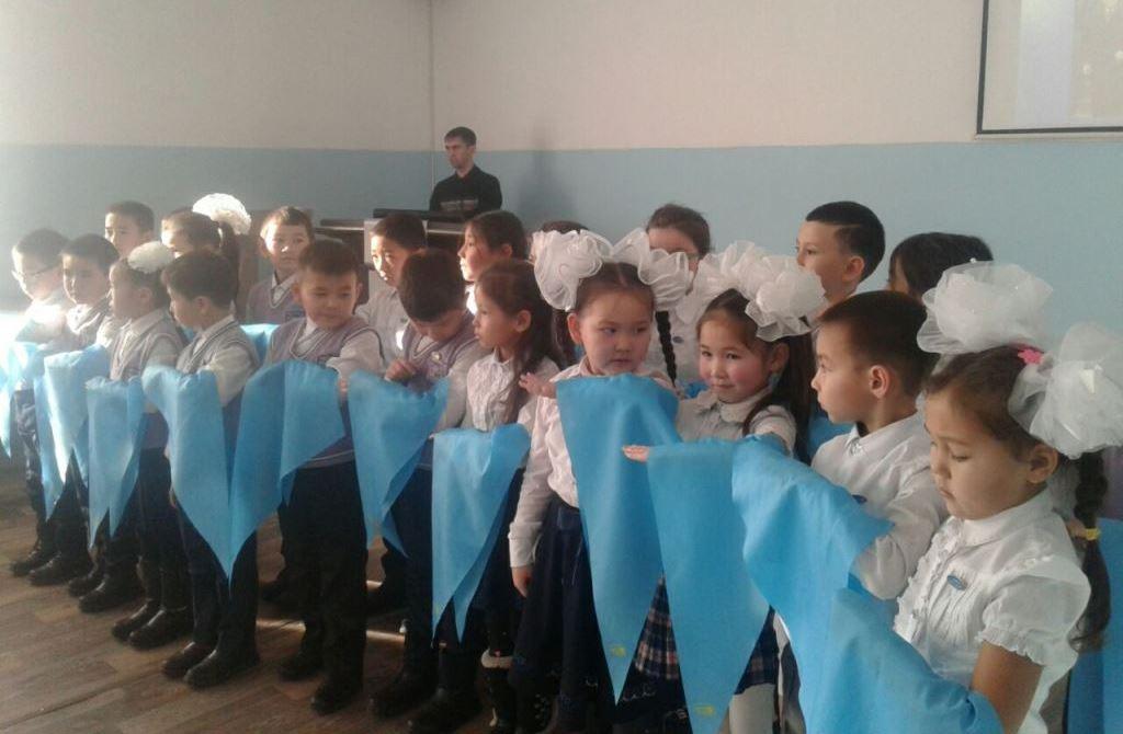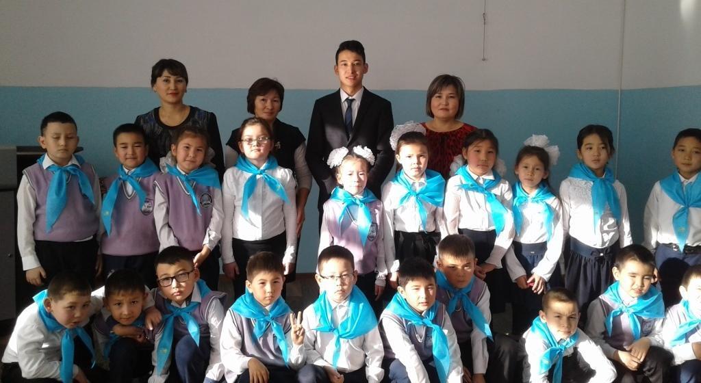 5. Торжественное принятие учащихся в ряды ЕДЮО « Жас Қыран» и «Жас Ұлан». На мероприятии присутствовал представитель партии «Нур Отан» Болатхан Мерей.