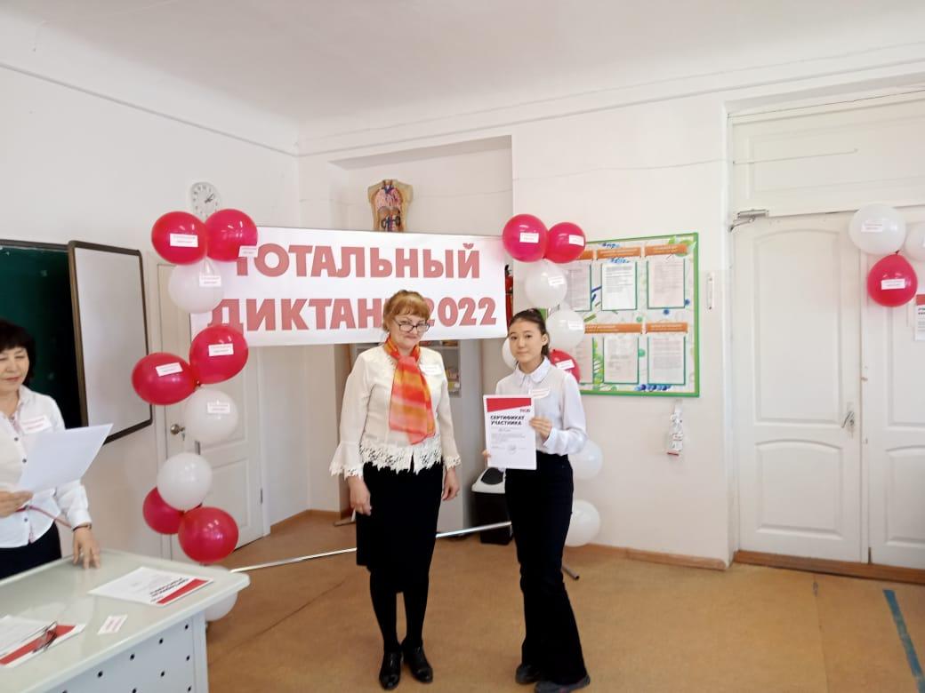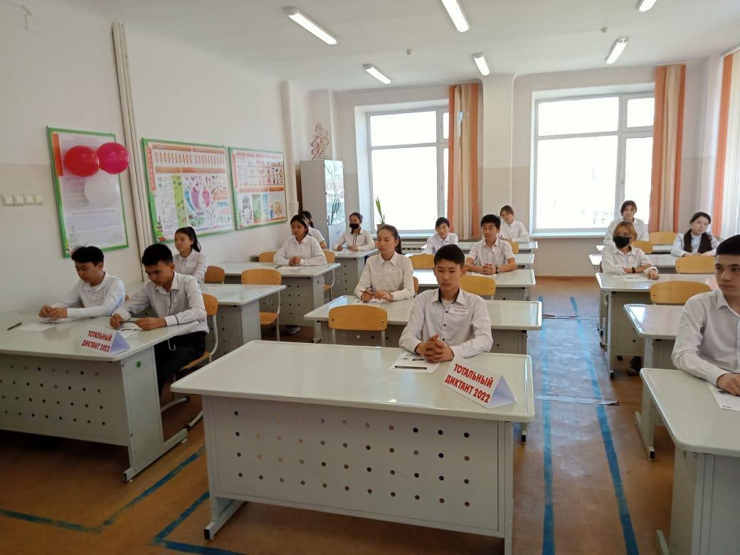 9 апреля 2022 года на базе КГУ « СОШ № 12» был проведен «Тотальный диктант» - Всемирная акция знания русского языка. В данной акции приняли участие   учащиеся 8 – 9  классов с Государственным языком обучения, для которых русский язык является неродным. Организаторами акции «Тотальный диктант» выступили учителя нашей школы: Синеев С.К., Искакова Р.Х., Нятина Н.Ю. Участники данного мероприятия получили «Сертификаты» участия, яркие эмоции, хорошее настроение  и показали свои знания по русскому языку.
