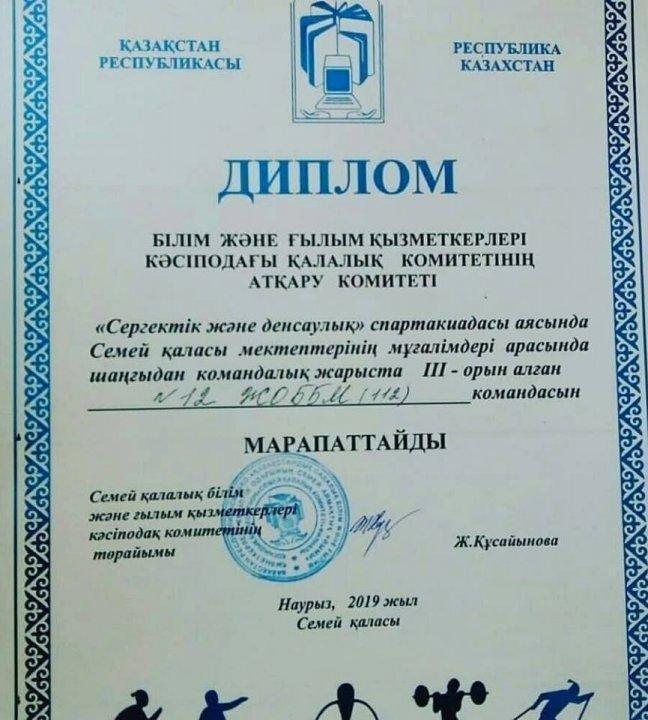 Семей қаласы мектептерінің мұғалімдері арасында өткен шаңғы тебу спартакиадасында біздің мектеп мұғалімдер құрамасы 3 орын иеленді. Жарысқа қатысқан ұстаздарымыз: